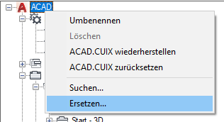 1. Klicken Sie auf der Registerkarte Anpassen im Bereich Anpassungen in <Dateiname> mit der rechten Maustaste auf eine beliebige Stelle in der Strukturansicht. Klicken Sie auf Ersetzen.