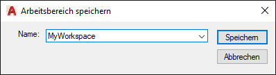 2. Geben Sie im Dialogfeld Arbeitsbereich speichern im Feld Name den Namen des neuen Arbeitsbereichs ein, oder wählen Sie einen vorhandenen Arbeitsbereich aus der Dropdown-Liste aus, um ihn zu überschreiben.