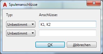 Klicken Sie zum Öffnen des Dialogfelds Spulenanschlüsse, in dem Sie die Anschlüsse für das Hauptsymbol definieren.