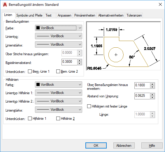 Der Vorgabebemaßungsstil heißt entweder Standard (Britisch) oder ISO-25 (Metrisch). Er wird allen Bemaßungen zugewiesen, bis Sie einen anderen Stil als aktuellen Bemaßungsstil festlegen.
