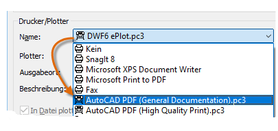 Wählen Sie in der Dropdown-Liste Drucker/Plotter AutoCAD PDF (General Documentation).pc3: