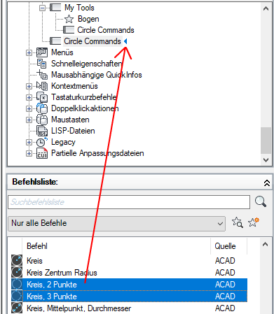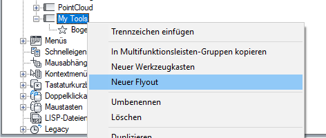 Ein neuer Werkzeugkasten (Werkzeugkasten1) wird erstellt, und ein neues Flyout, das den Werkzeugkasten referenziert, wird unten im ausgewählten Werkzeugkasten platziert.