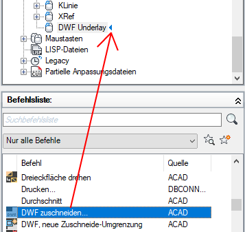 - Ziehen Sie im Bereich Befehlsliste den Befehl, den Sie der Doppelklickaktion hinzufügen möchten, in den Bereich Anpassungen in <Dateiname>.