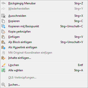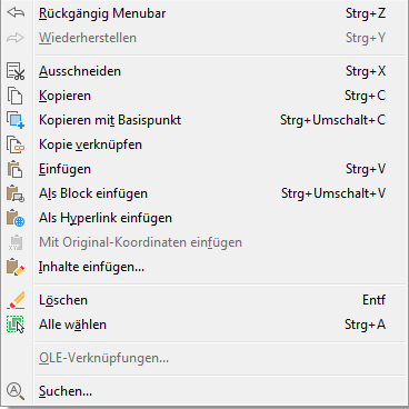 Die Art und Weise, mit der ein Menüelement angezeigt wird, gibt seine Verfügbarkeit im Programm an.