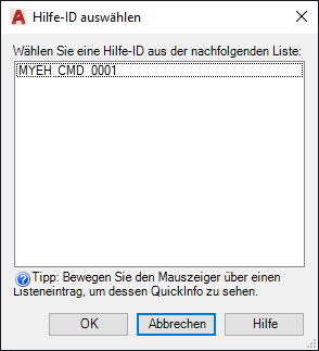 Wenn der Befehl einem Werkzeugkasten oder einer Multifunktionsleisten-Gruppe hinzugefügt wird, wird die erweiterte QuickInfo angezeigt, wenn erweiterte QuickInfos aktiviert sind und der Mauszeiger sich eine bestimmte Zeit lang über dem Befehl befindet.