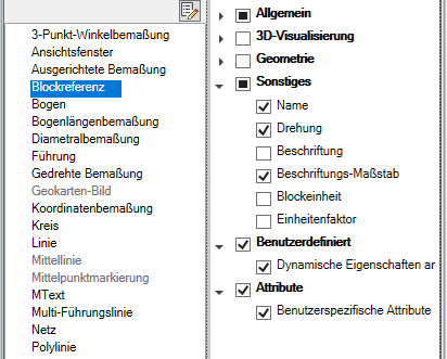 Steuern der Anzeige von benutzerdefinierten Eigenschaften und Attributen für Blockreferenzen