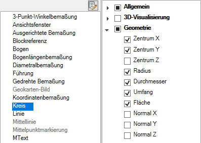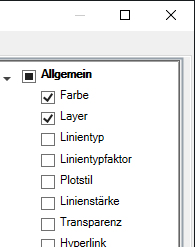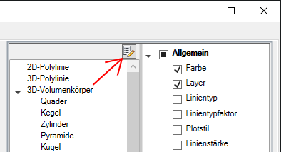 Wenn ein Objekttyp ausgewählt ist, werden die Eigenschaften für diesen Objekttyp in der Schnelleigenschaftenpalette angezeigt, wenn ein Objekt des entsprechenden Objekttyps ausgewählt, QPMODE auf 2 festgelegt und PICKFIRST aktiviert ist. Heben Sie die Auswahl eines Objekttyps auf, wenn dieser Objekttyp aus Schnelleigenschaftenpalette entfernt werden soll.
