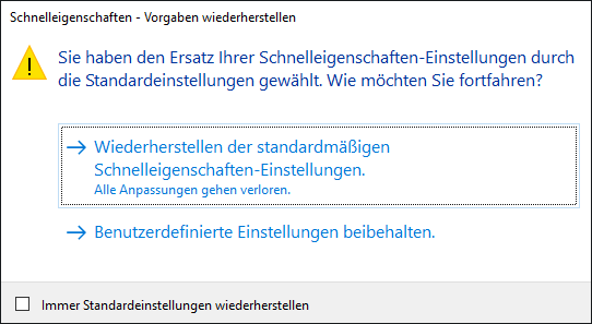 - Klicken Sie auf Wiederherstellen der standardmäßigen Schnelleigenscharten-Einstellungen.