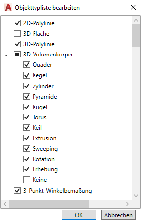 Steuern der verwendeten Objekttypen