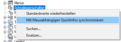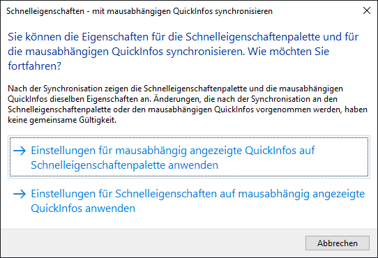 Synchronisieren der Schnelleigenschaften mit mausabhängigen QuickInfos