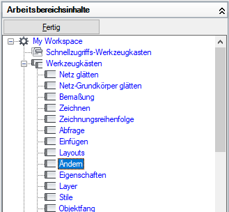 - Klicken Sie im Bereich Arbeitsbereichsinhalte auf das Pluszeichen (+) neben dem Knoten Werkzeugkästen, um ihn zu erweitern.