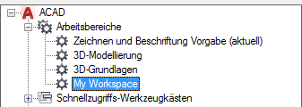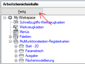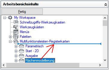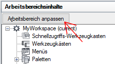 - Klicken Sie auf der Registerkarte Anpassen im Bereich Anpassungen in <Dateiname> auf das Pluszeichen (+) neben dem Knoten Arbeitsbereiche, um ihn zu erweitern.