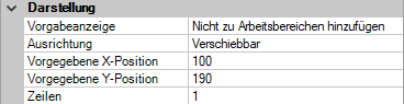 - Geben Sie im Feld Zeilen eine Zahl ein. Geben Sie die Anzahl der Zeilen ein, auf die die Schaltflächen im Werkzeugkasten, wenn möglich, verteilt werden sollen. Der Vorgabewert lautet 0. (Nur verfügbar, wenn Ausrichtung auf Verschiebbar eingestellt ist.)