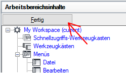 - Klicken Sie auf der Registerkarte Anpassen im Bereich Anpassungen in <Dateiname> auf den Arbeitsbereich, der den zu ändernden Werkzeugkasten enthält.
