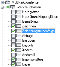 - Klicken Sie im Bereich Anpassungen in <Dateiname> auf das Pluszeichen (+) neben dem Knoten Werkzeugkästen, um ihn zu erweitern.