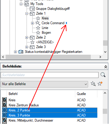 Der kopierte Befehls-Navigator wird unter dem Knoten Multifunktionsleiste