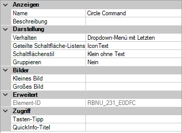 - Stellen Sie die Eigenschaften des Dropdown-Menüs wie gewünscht ein, um die Darstellung des Dropdown-Menüs und der Befehle unter dem Dropdown-Menü zu steuern.