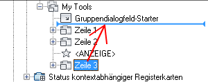 Unten in der Struktur der Multifunktionsleisten-Gruppen wird eine neue Gruppe (mit der Bezeichnung Gruppe1) angefügt.