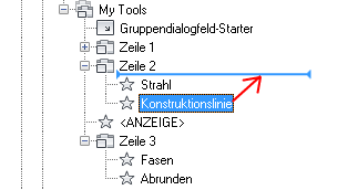 - Ziehen Sie einen Befehl aus der Befehlsliste in eine Zeile, eine untergeordnete Gruppe oder ein Dropdown-Menü der Gruppe.