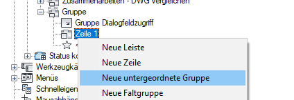 - Klicken Sie mit der rechten Maustaste auf die Zeile, und wählen Sie Neue untergeordnete Gruppe oder Neue Faltgruppe.