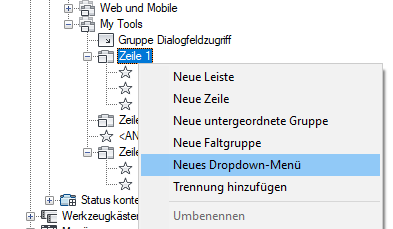 An der letzten Position der Zeile wird ein neues Dropdown-Menü (mit dem Namen Neues Dropdown-Menü) erstellt.