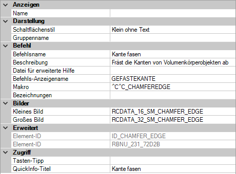 - Ändern Sie im Bereich Eigenschaften die Eigenschaften des hinzugefügten Befehls.