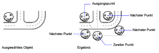 Sie können Objekte um eine relative Entfernung kopieren, indem Sie den ersten Punkt durch Koordinatenwerte und den zweiten Punkt durch Drücken der EINGABETASTE festlegen. Die Koordinatenwerte legen keinen Basispunkt, sondern eine relative Verschiebung fest.