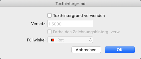 Gibt den Textrand für den undurchsichtigen Hintergrund an. Der Wert basiert auf der Texthöhe. Der Faktor 1.0 entspricht exakt dem Absatztextobjekt. Der Faktor 1.5 erweitert den Hintergrund um das 0,5fache der Texthöhe.