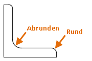 Innere Ecken werden als Abrundungen und äußere Ecken als Rundung bezeichnet. Beides können Sie mit dem Befehl ABRUNDEN erstellen.