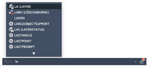 Für einige Befehle gibt es abgekürzte Namen oder Befehlsaliasse, die Sie in der Befehlszeile eingeben können. Beispiel: Statt kreis zum Starten des Befehls KREIS einzugeben, geben Sie nur k ein und drücken die EINGABETASTE. Der Befehl Vorschlag (falls verfügbar) zeigt die Aliasnamen vor dem Befehlsnamen an: C (KREIS)