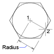 Wenn Sie den Radius mit dem Zeigegerät angeben, werden Drehung und Größe des Polygons festgelegt. Bei Eingabe des Radius über die Tastatur wird die Unterkante des Polygons mit dem aktuellen Fangdrehwinkel gezeichnet.