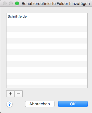 Benutzerdefinierte Felder werden mit dem Dialogfeld Benutzerdefinierte Felder erstellt und bearbeitet, das Sie über die Schaltfläche Hinzufügen/Bearbeiten im Dialogfeld Plotmarkierung aufrufen können.