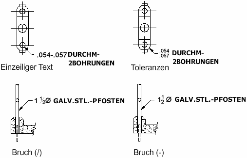 Zeichen, die Brüche und Toleranzen darstellen, können so formatiert werden, dass sie verschiedene Standards erfüllen.