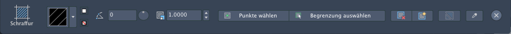 Die Schraffurleiste wird angezeigt, wenn Sie den Befehl SCHRAFF oder ABSTUF starten, eine vorhandene Schraffur auswählen oder eine Zeichnung ausfüllen.