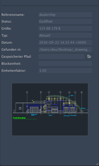 Wenn Sie ein referenziertes DWG (XRef-Datei) ausgewählt haben, werden zusätzliche Eigenschaften angezeigt. Keine der zusätzlichen Bildeigenschaften kann bearbeitet werden.