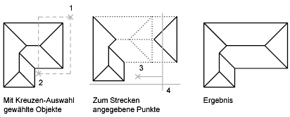 Mit STRECKEN können Sie die Endpunkte von Objekten verschieben, die innerhalb eines Kreuzen-Auswahlfensters liegen oder dieses kreuzen.