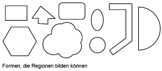 Regionen sind zweidimensionale, geschlossene Bereiche mit physischen Eigenschaften wie Schwerpunkten oder Masseschwerpunkten. Sie können bestehende Regionen zu einer komplexen Region kombinieren.