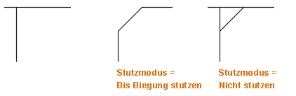 Die ausgewählten Objekte zum Definieren einer Fase oder Abschrägung werden bis zur resultierenden Winkellinie gestutzt oder erweitert. Sie können mit der Option Stutzen festlegen, ob ausgewählte Objekte geändert werden oder nicht.