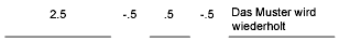 Geben Sie eine Musterdefinition in Form einer durch Kommata getrennten Reihe von Zahlen ein. Positive Zahlen bestimmen die Länge von Strichen, negative Zahlen die Länge von Zwischenräumen. Eine Null steht für einen Punkt.