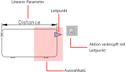 In einer Blockdefinition liefern Aktionen und Parameter Regeln für das Verhalten eines Blocks, nachdem er in die Zeichnung eingefügt worden ist.