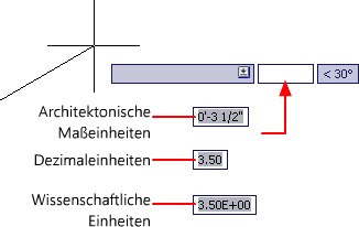 Sie können unter mehreren gängigen Konventionen zur Darstellung des Formats und der Genauigkeit von linearen Abständen sowie Koordinatenn auswählen, die in der Palette Eigenschaften, in der dynamischen Eingabe, in der Statusleiste und an anderen Positionen angezeigt werden.