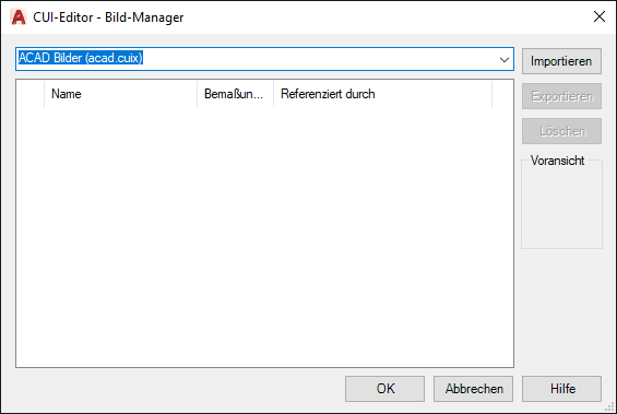 Bei Importen handelt es sich um extern gespeicherte Bilder in der ausgewählten Anpassungsdatei aus der Liste der geladenen Anpassungsdateien.