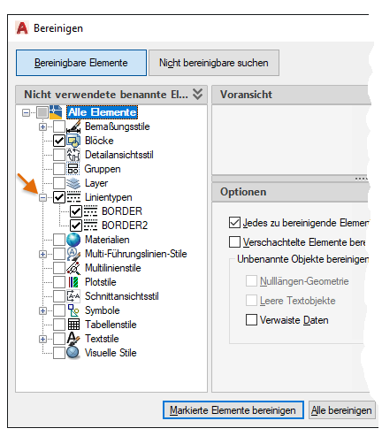 So bereinigen Sie nicht verwendete Linientypdefinitionen