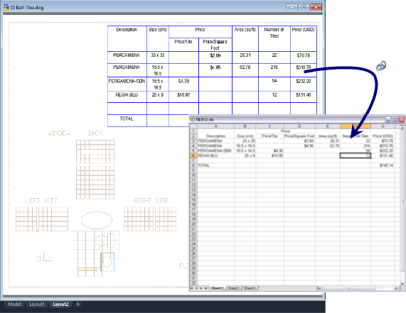 Wenn Änderungen an einem verknüpften Arbeitsblatt vorgenommen wurden (z. B. durch Hinzufügen einer Zeile oder Spalte), kann die Tabelle in Ihrer Zeichnung mit dem Befehl DATENVERKNAKT entsprechend aktualisiert werden. Wurde analog dazu eine Änderung an einer Tabelle in Ihrer Zeichnung vorgenommen, können Sie das verknüpfte Datenblatt mit dem gleichen Befehl aktualisieren.