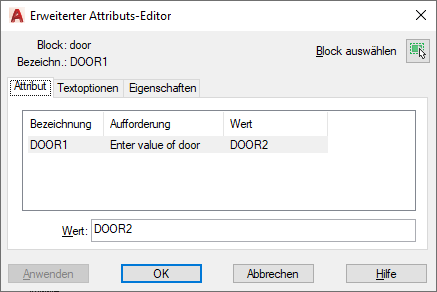 Der Name des Blocks, dessen Attribute Sie bearbeiten.
