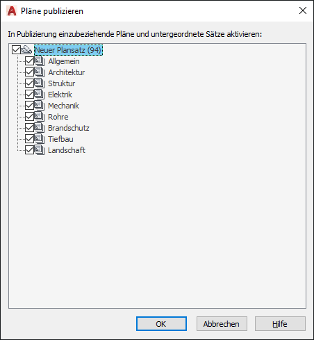 Plansatz (Befehl), Finden: > auf der Registerkarte Planliste mit der rechten Maustaste auf den Namen des Plans > Publizieren > lizierungseinstellungen für untergeordnete Sätze und Plansätze bearbeiten