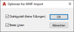 Importiert Objekte als Drahtmodelle. Wenn Sie die Option deaktivieren, werden Objekte als gefüllte Objekte eingelesen.