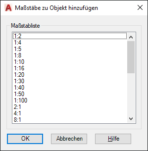 Zeigt die Liste der Maßstäbe an, die dem ausgewählten Beschriftungsobjekt hinzugefügt werden können.