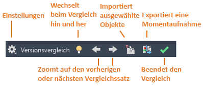 Klicken Sie im Werkzeugkasten Versionsvergleich auf Einstellungen.