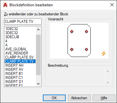 Zeigt die Beschreibung der ausgewählten Blockdefinition an.